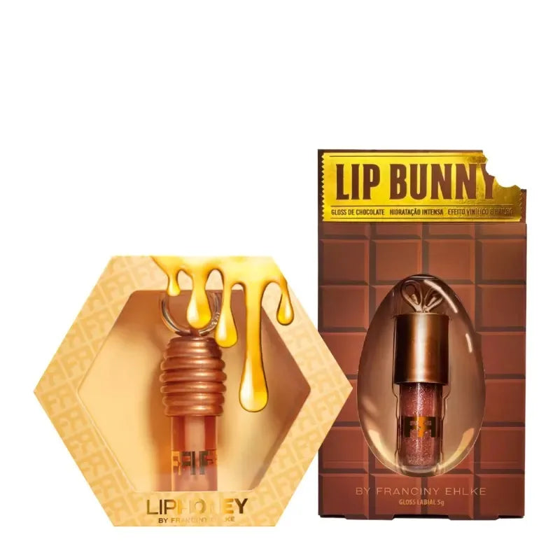 O Kit LipHoney + Lip Bunny reúne dois glosses icônicos, unindo brilho radiante, hidratação intensa e muito estilo. Versáteis e irresistíveis, eles permitem variar entre a leveza luminosa do mel e a sofisticação intensa do chocolate — ou misturar tudo e criar um efeito único, só seu!